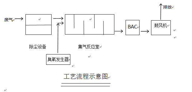 當臭氧完全和廢氣發生反應,產生無二次污染物質,理想狀態是無臭氧殘留,但是由于臭氧添加量把握精確度不高,所以往往會在理論值的基礎上增大添加量,有可能在廢氣完全被處理后,還有臭氧殘留。所以在處理后的氣體出口在接入活性炭BAC,不僅能夠吸附殘留的臭氧,還可以進一步凈化廢氣,減小臭氧添加量。