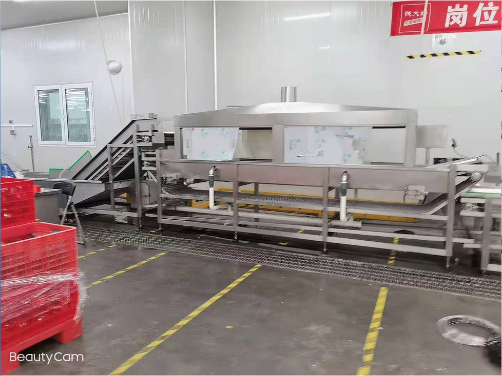 客戶的工藝是從傳送帶上清洗,蔬菜,水果,肉類,包含,雞鴨魚,用臭氧水在清洗機(jī)去除水產(chǎn)的腥味達(dá)到消毒殺菌的作用
